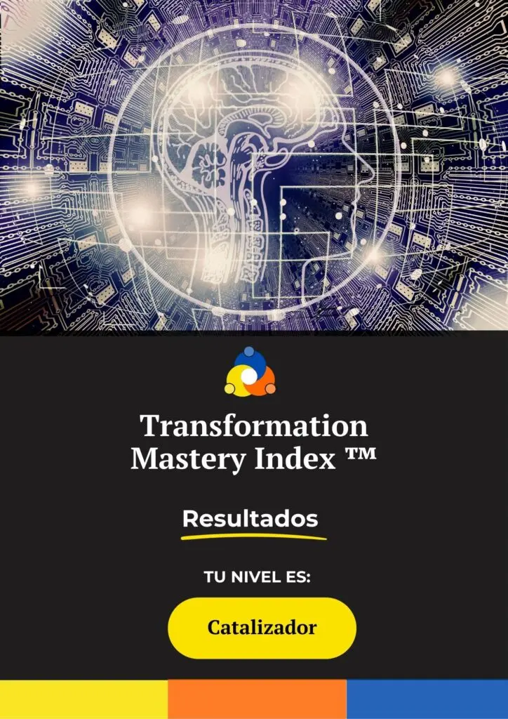 Por eso creamos el Transformation Mastery Index™. Responde una serie de preguntas diseñadas para evaluar tu nivel de evolución actual  y en minutos recibes un video y un reporte personalizado de 8 a 10 páginas que te dice exactamente dónde estás, qué bloqueos específicos están limitando tu crecimiento hoy y cuál es el programa diseñado para tu nivel.